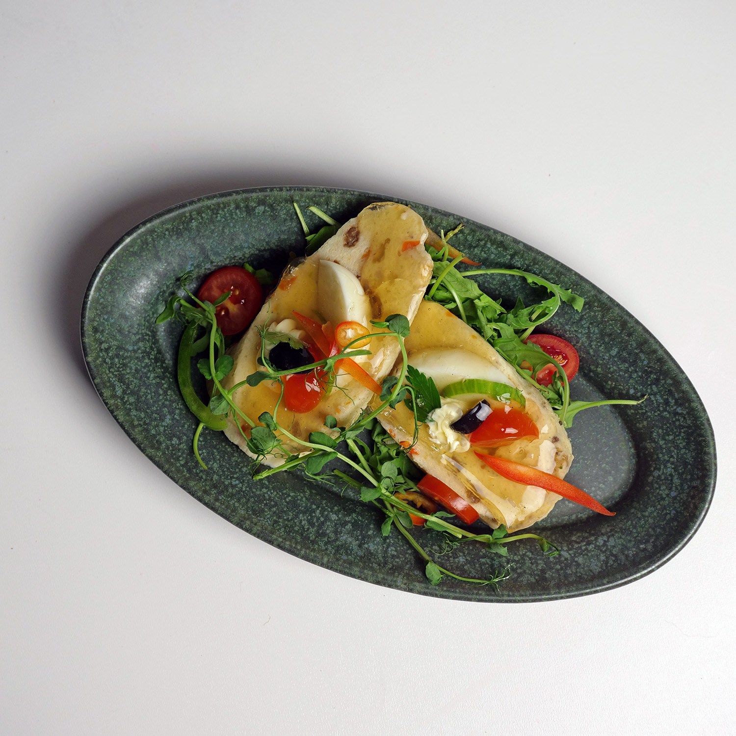 Sandacz faszerowany Specjal z sosem tatarskim: Wyśmienity sandacz, wypełniony starannie dobranymi składnikami, które nadają mu wyjątkowego charakteru. Podawany z delikatnym, kremowym sosem tatarskim.